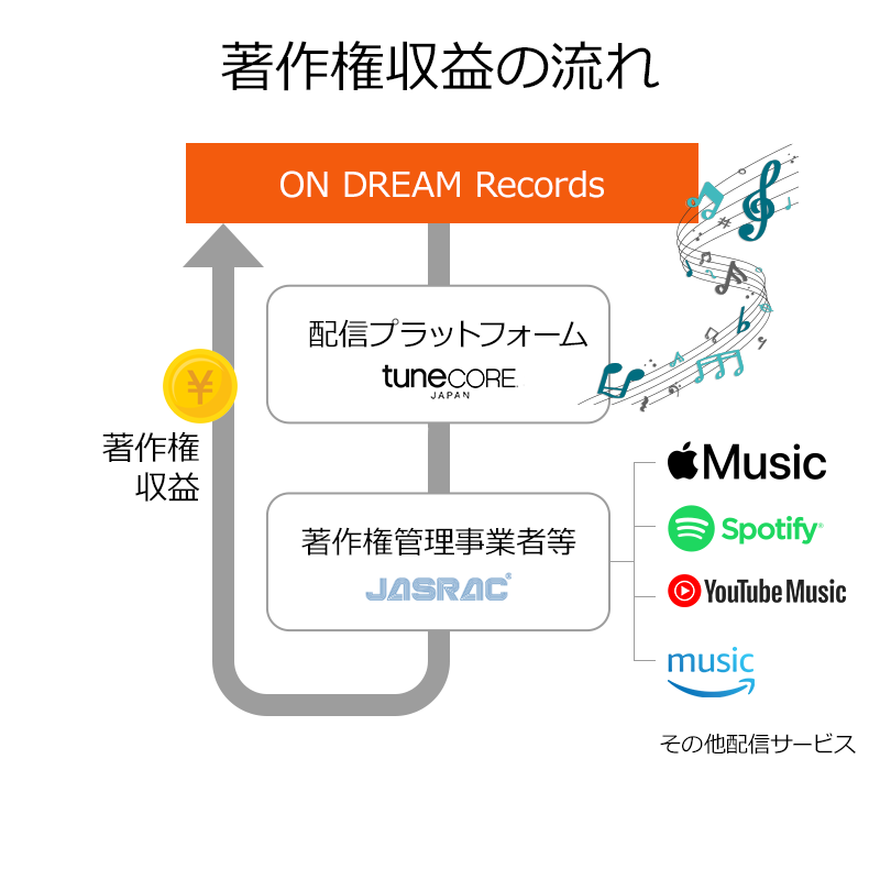 楽曲が音楽ストリーミングサービスなどで再生されたり、MVがYouTubeで再生されることで収益を得ることができ、あなたの音楽活動をより前進させることにも繋がります。